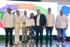 Durante el acto, se realizó la entrega de un certificado a la empresa Costa a Costa Textíl, de la provincia Independencia, por su reciente acogida a los beneficios de la Ley 12-21.